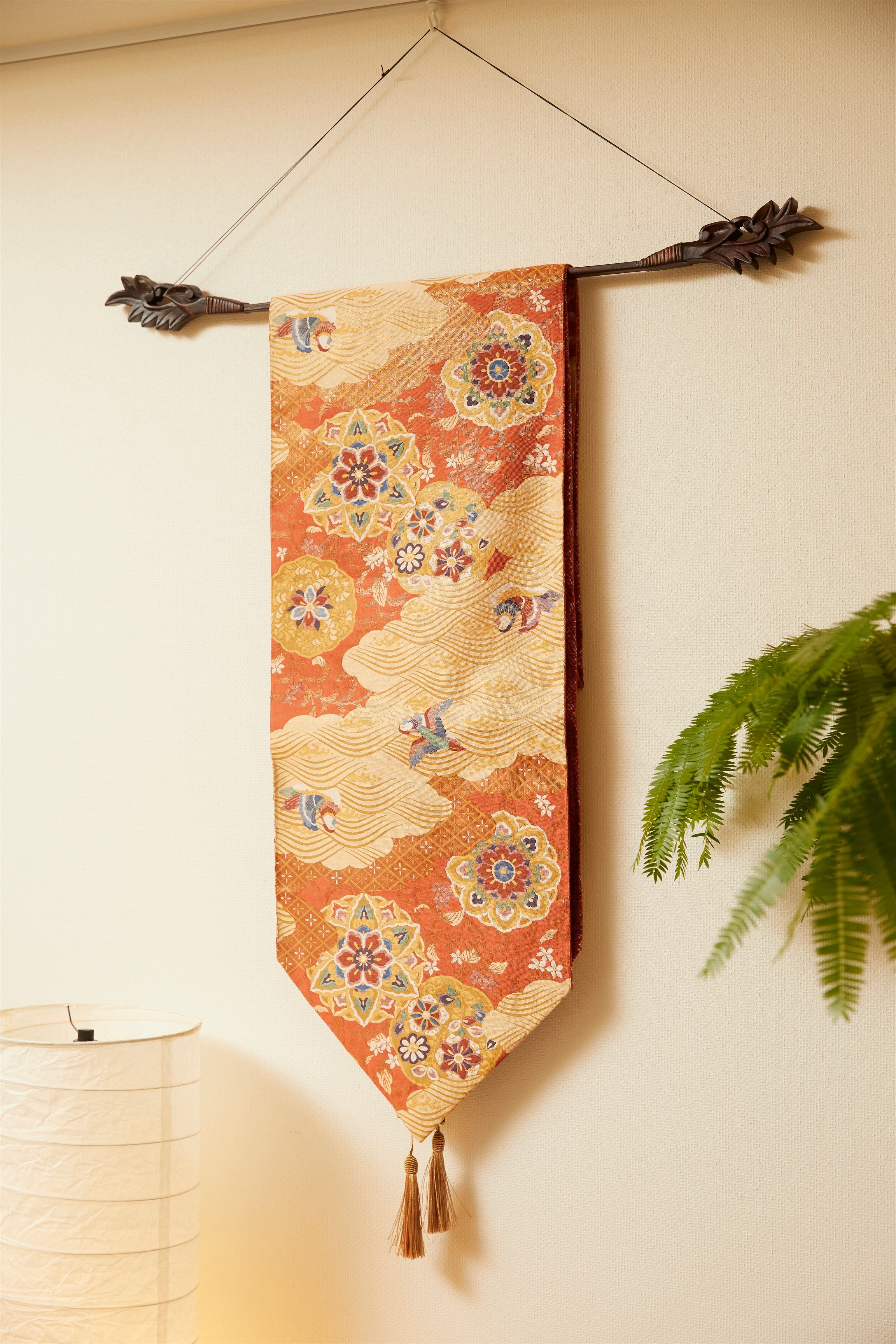 お部屋のインテリア掛け軸(タペストリー)として楽しめます。テーブルランナーとしても使用できます。フリンジは取り外し可能。