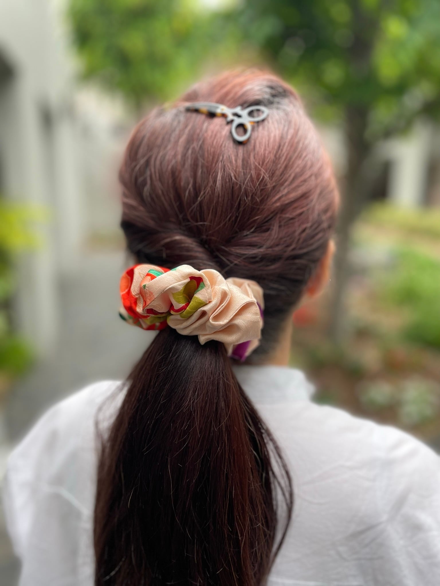 ヴィンテージ着物のリメイクシュシュ